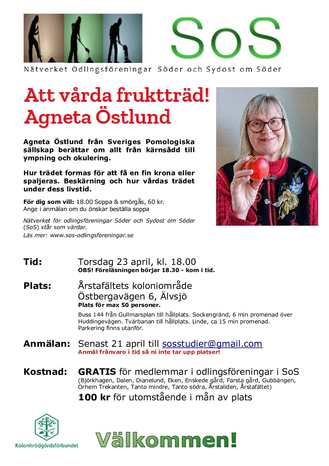Nätverket för odlingsföreningar Söder och Sydost om Söder (SoS) står som värdar.